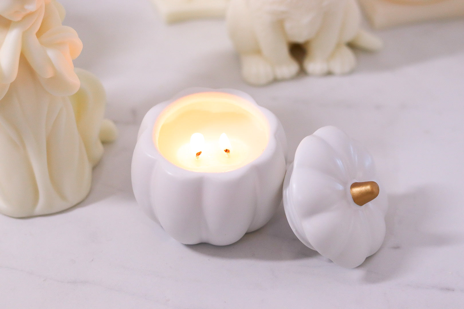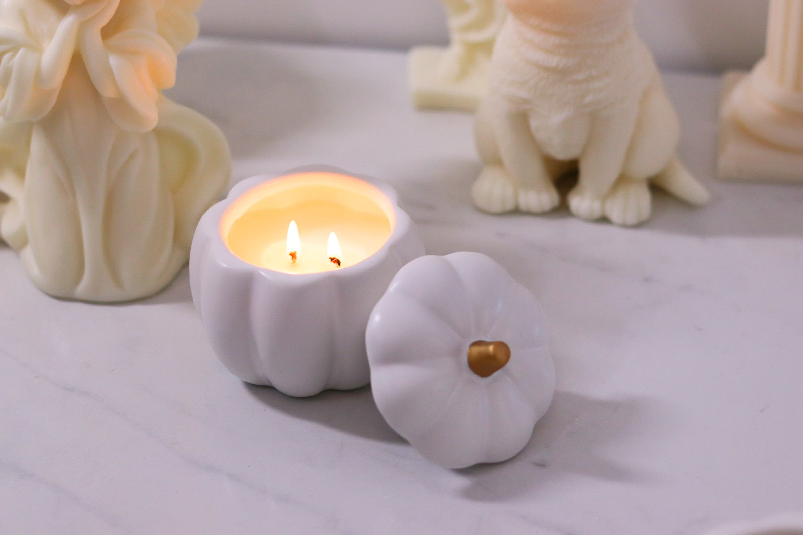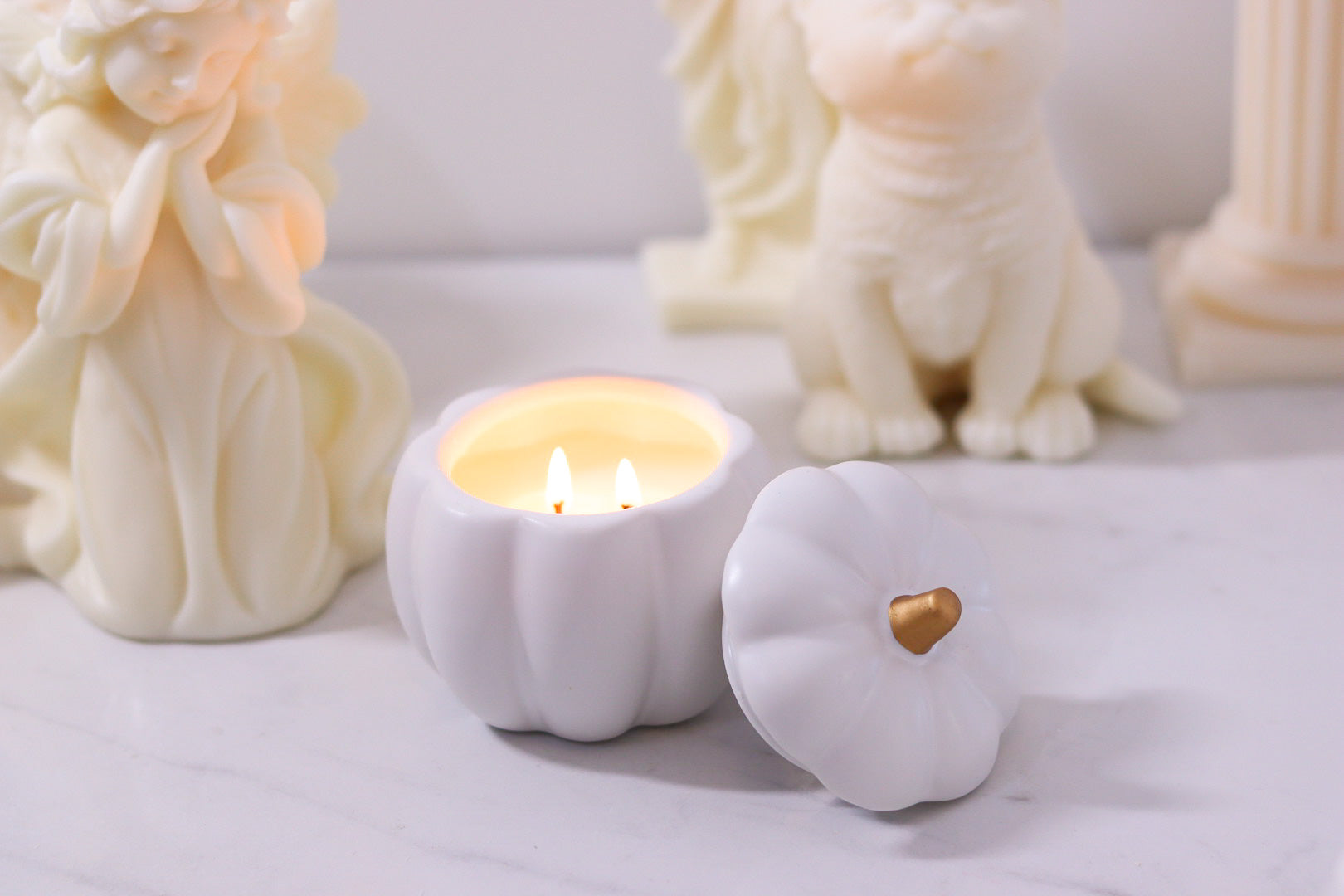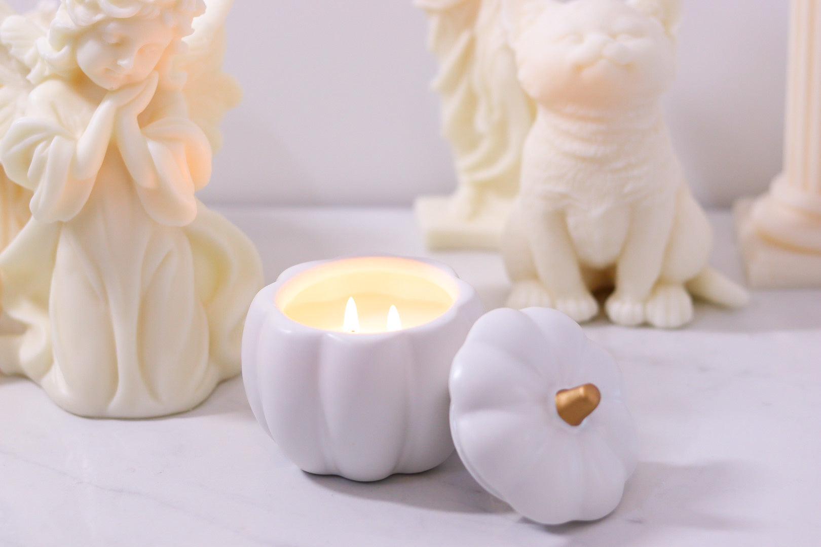 This luxurious Pumpkin Jar Candle is a unique and elegant way to add holiday ambiance to your home. Releasing the rich scent of your favorite seasonal aroma, this candle is an ideal accessory for cozy, festive evenings. Choose from 4 aromatic varieties to select your favorite cozy holiday scent.